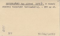 SZCZEPAŃSKI Jan Alfred 1936 b O rozwój zimowej turystyki tatrzańskiej.