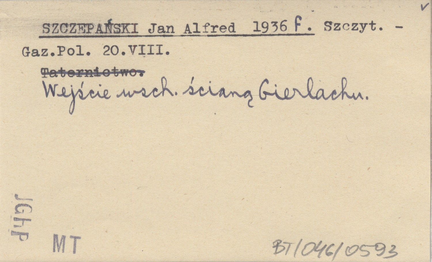 Gazeta Polska, 20 VIII. Wejście wschodnią ścianą Gierlachu.