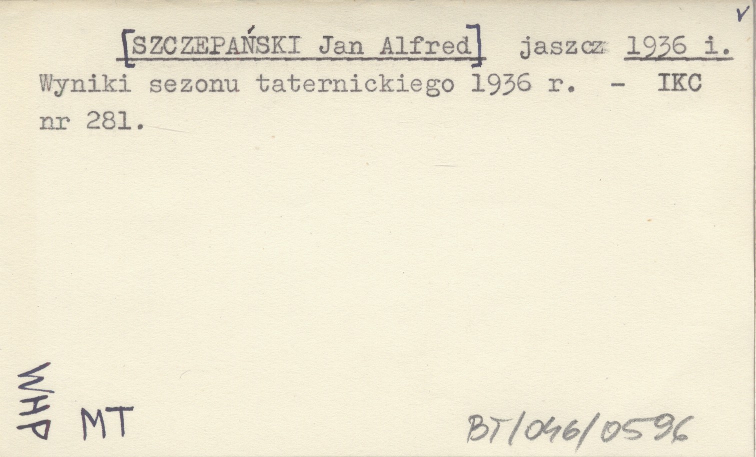 jaszcz [SZCZEPAŃSKI Jan Alfred] 1936 i Wyniki sezonu taternickiego 1936 r.