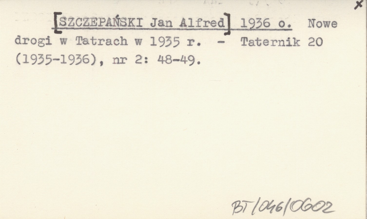 [SZCZEPAŃSKI Jan Alfred] 1936 o Nowe drogi w Tatrach w 1935 r.