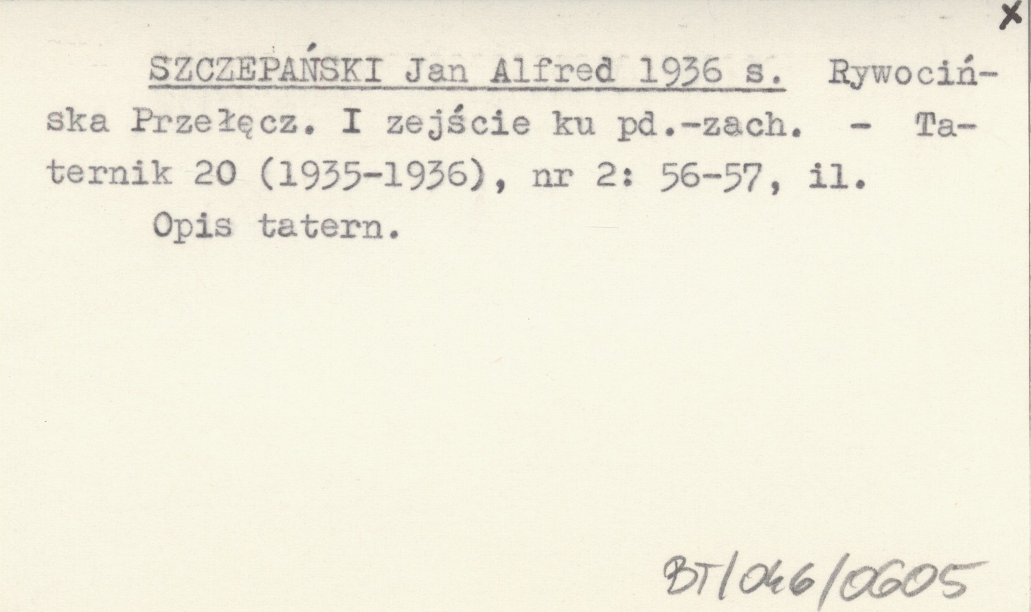 SZCZEPAŃSKI Jan Alfred 1936 s Rywocińska Przełęcz. I zejście ku pd.-zach.