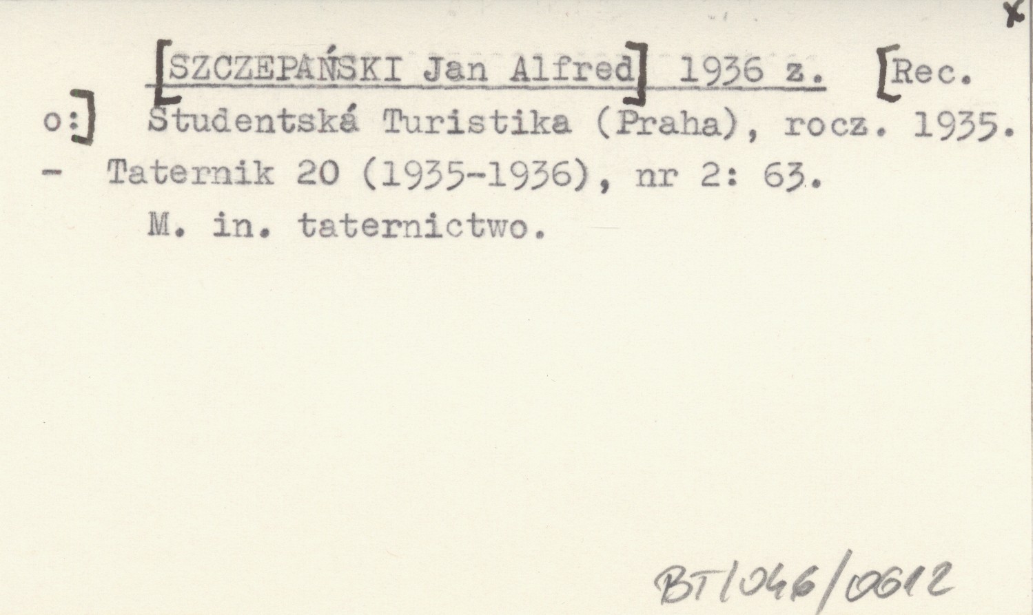 [SZCZEPAŃSKI Jan Alfred] 1936 z [Rec. o:] Studentská Turistika (Praha), R. 1935.