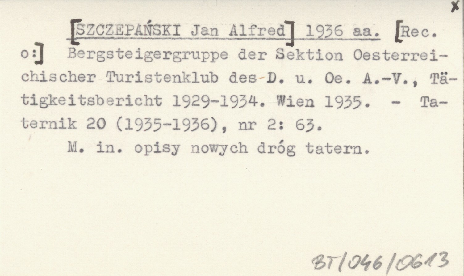 [SZCZEPAŃSKI Jan Alfred] 1936 aa [Rec. o:] Bergsteigergruppe der Sektion Oesterreichischer Turistenklub des D.u.Oe.A.-V., Tätigkeitsbericht 1929-1934. Wien 1935.