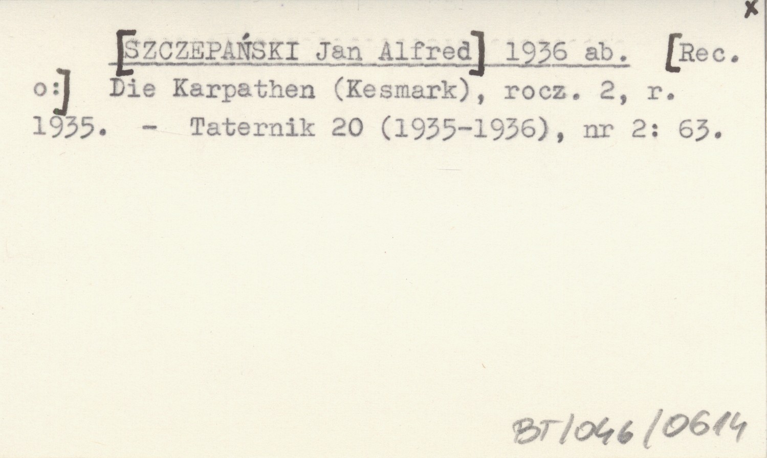 [SZCZEPAŃSKI Jan Alfred] 1936 ab [Rec. o:] Die Karpathen (Kesmark), R. 2 (1935).