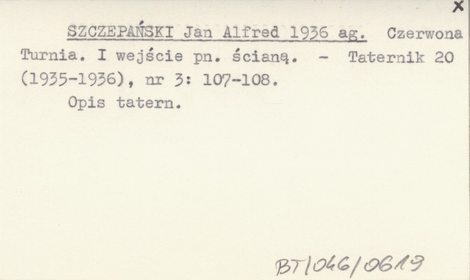 SZCZEPAŃSKI Jan Alfred 1936 ag Czerwona Turnia. I wejście pn. ścianą.