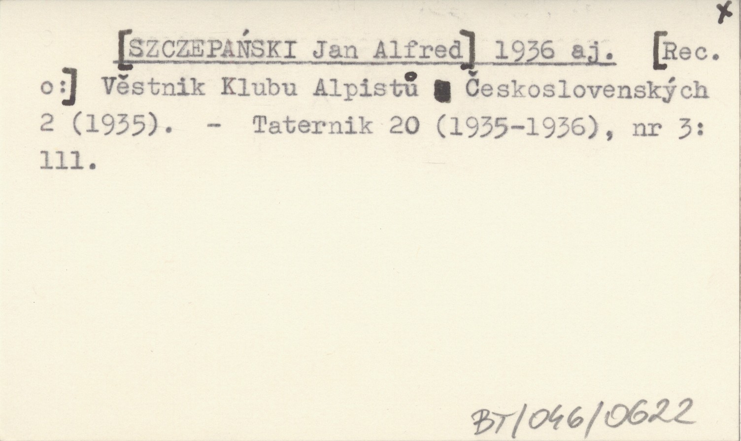 [SZCZEPAŃSKI Jan Alfred] 1936 aj [Rec. o:] Věstnik Klubu Alpistů Československých 2 (1935).