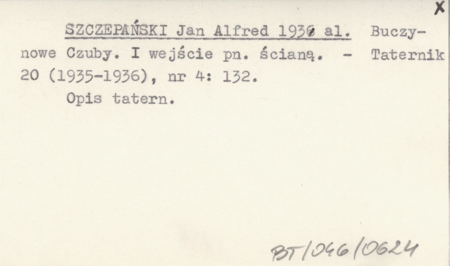 SZCZEPAŃSKI Jan Alfred 1936 al Buczynowe Czuby. I wejście pn. ścianą.