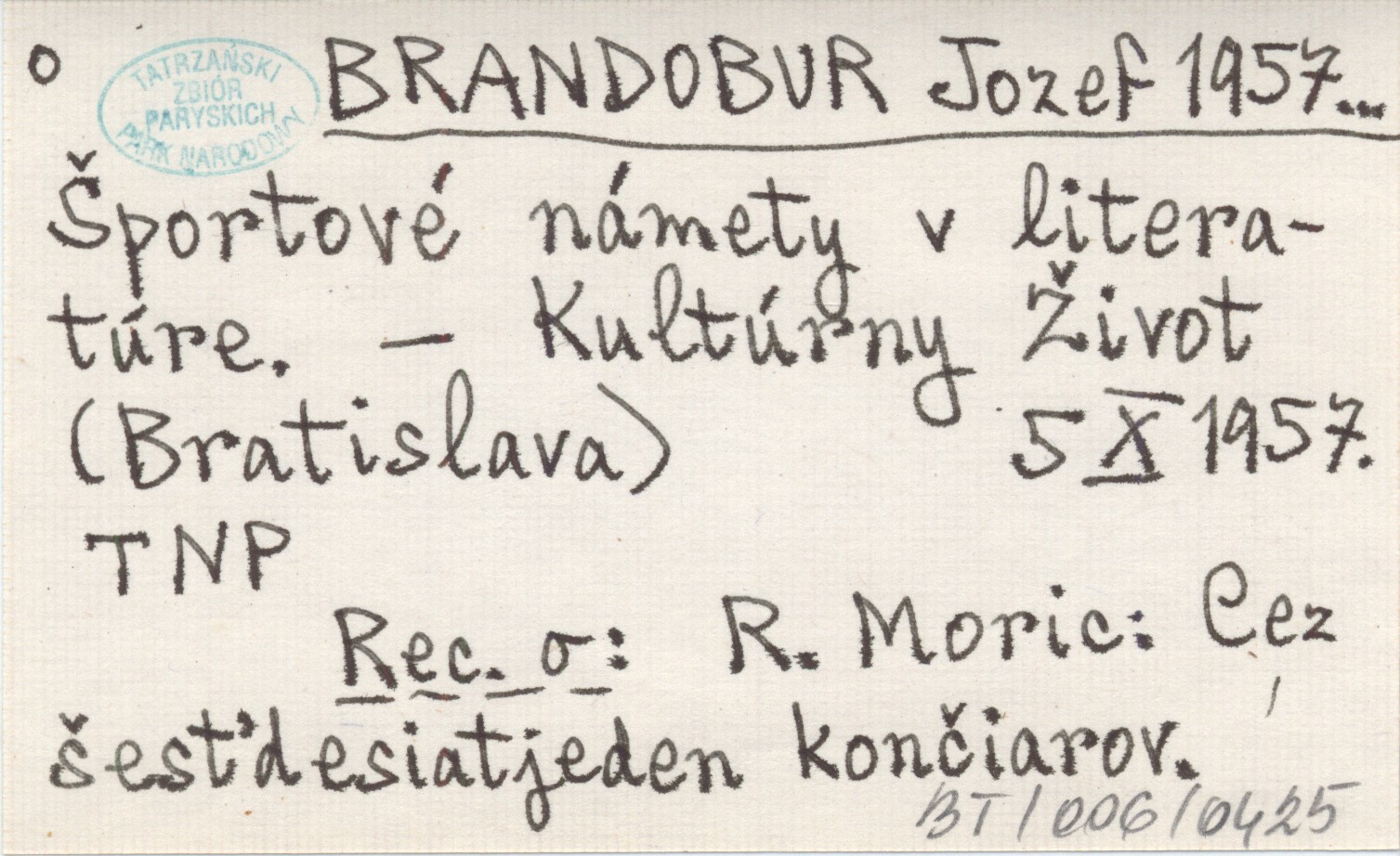 Kulturnę źivot (Bratislava) , 5 X 1957. REC: R. MORIC: Cez čes»desiatjeden konèiarov.