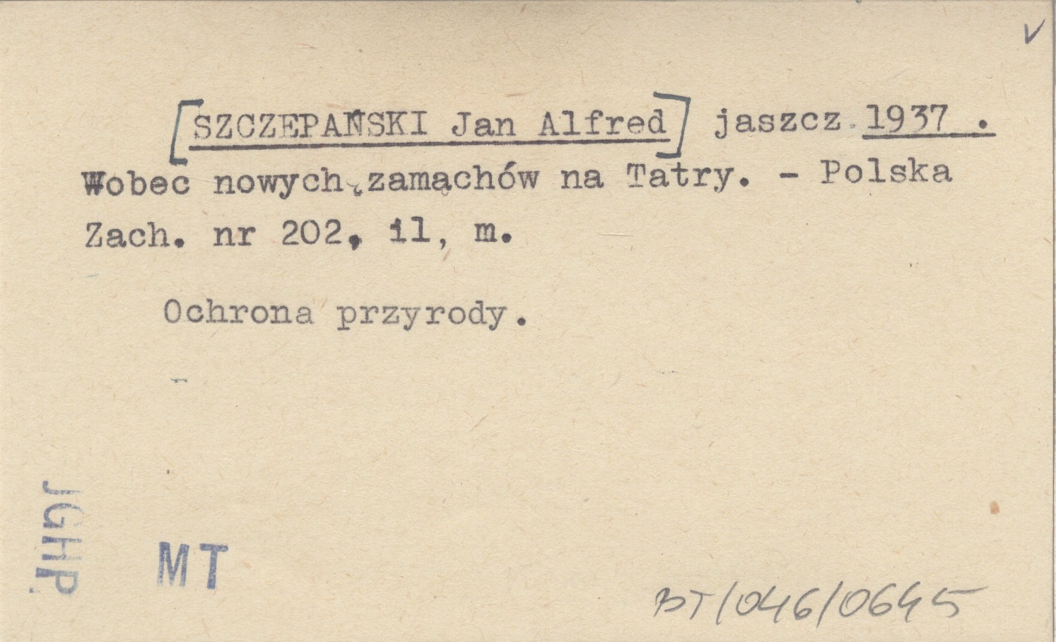 jaszcz [SZCZEPAŃSKI Jan Alfred] 1937 Wobec nowych zamachów na Tatry.