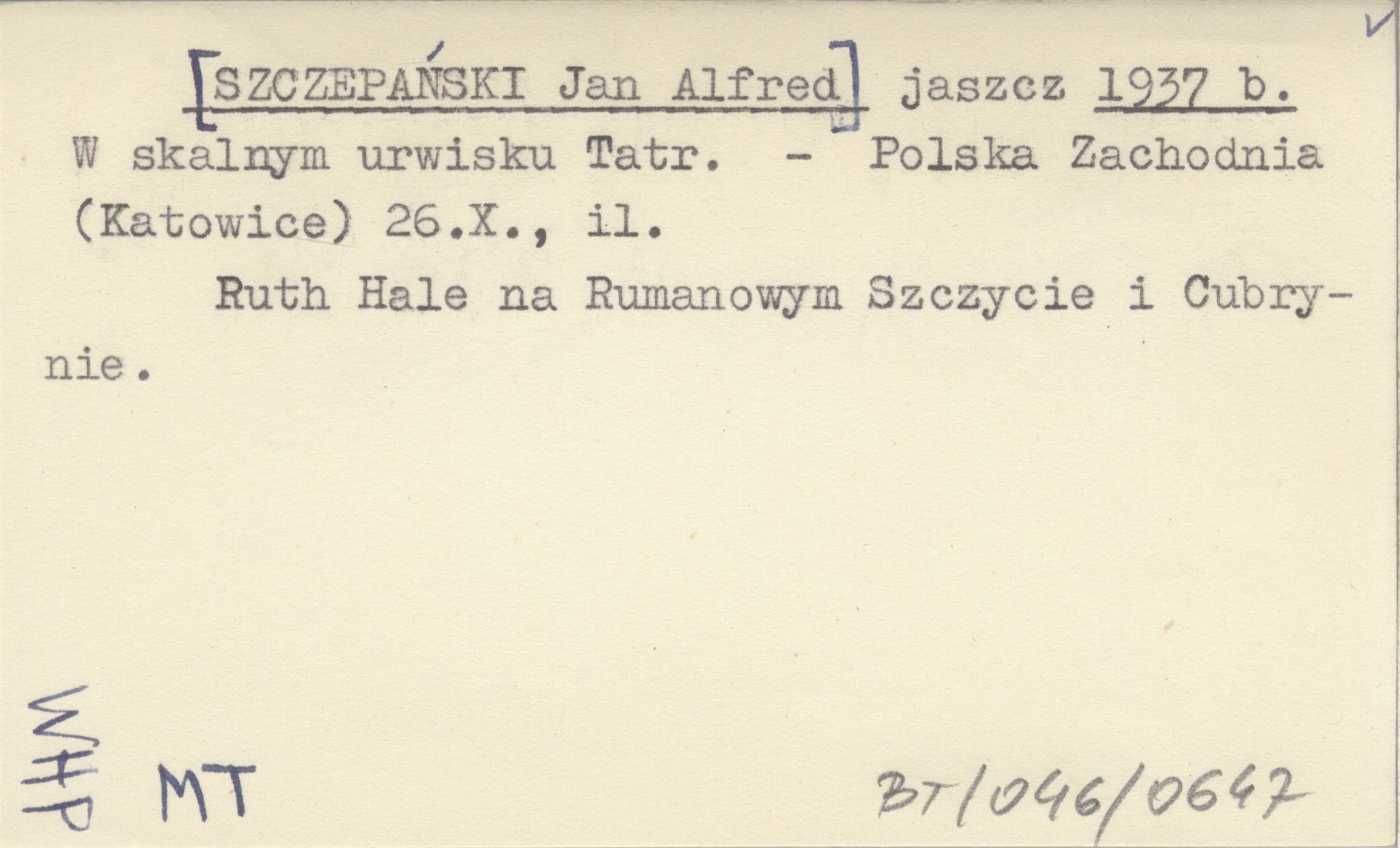 Polska Zachodnia (Katowice) , 26 X, il. Ruth Hale na Rumanowym Szczycie i Cubrynie.