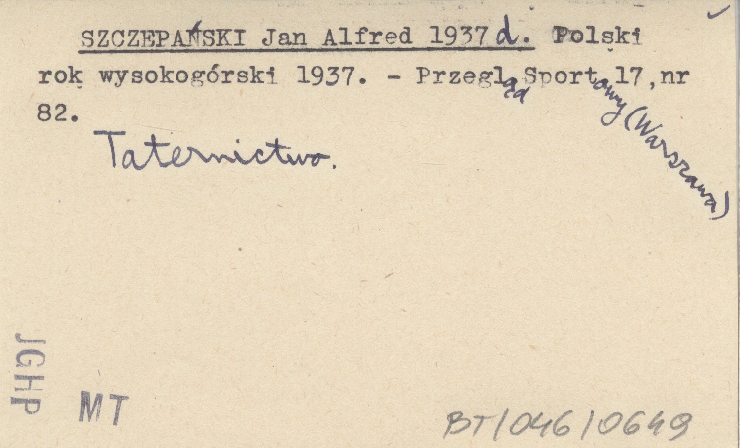 SZCZEPAŃSKI Jan Alfred 1937 d Polski rok wysokogórski 1937.