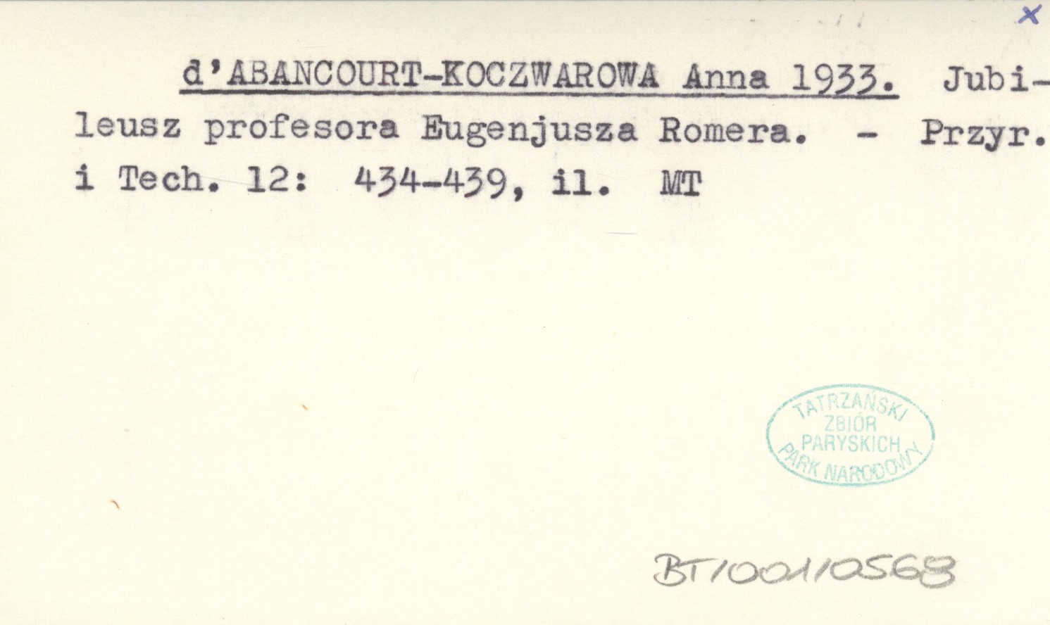 d'ABANCOURT-KOCZWAROWA Anna 1933 Jubileusz profesora Eugenjusza Romera.