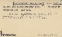 SZCZEPAŃSKI Jan Alfred 1937 d Polski rok wysokogórski 1937.