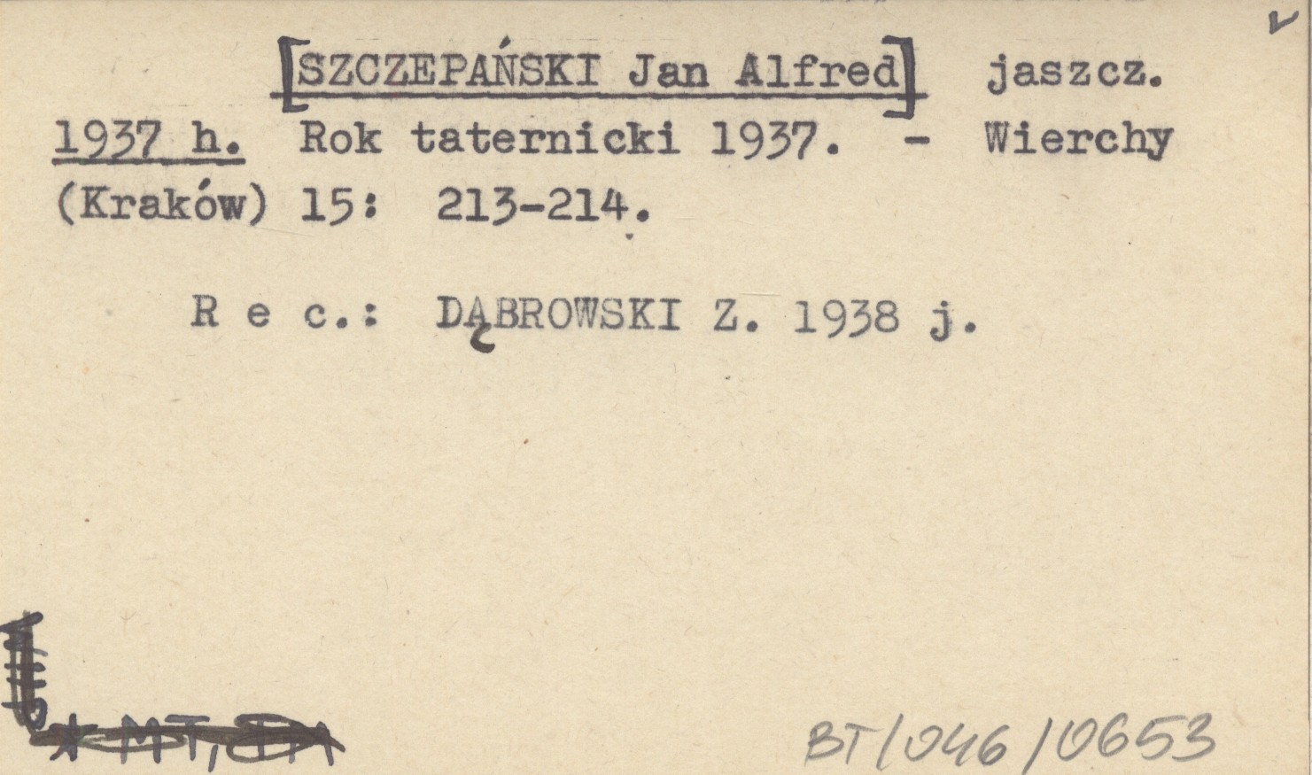 Wierchy (Kraków) , 15: 213-214. REC: DĄBROWSKI Z. 1938 j