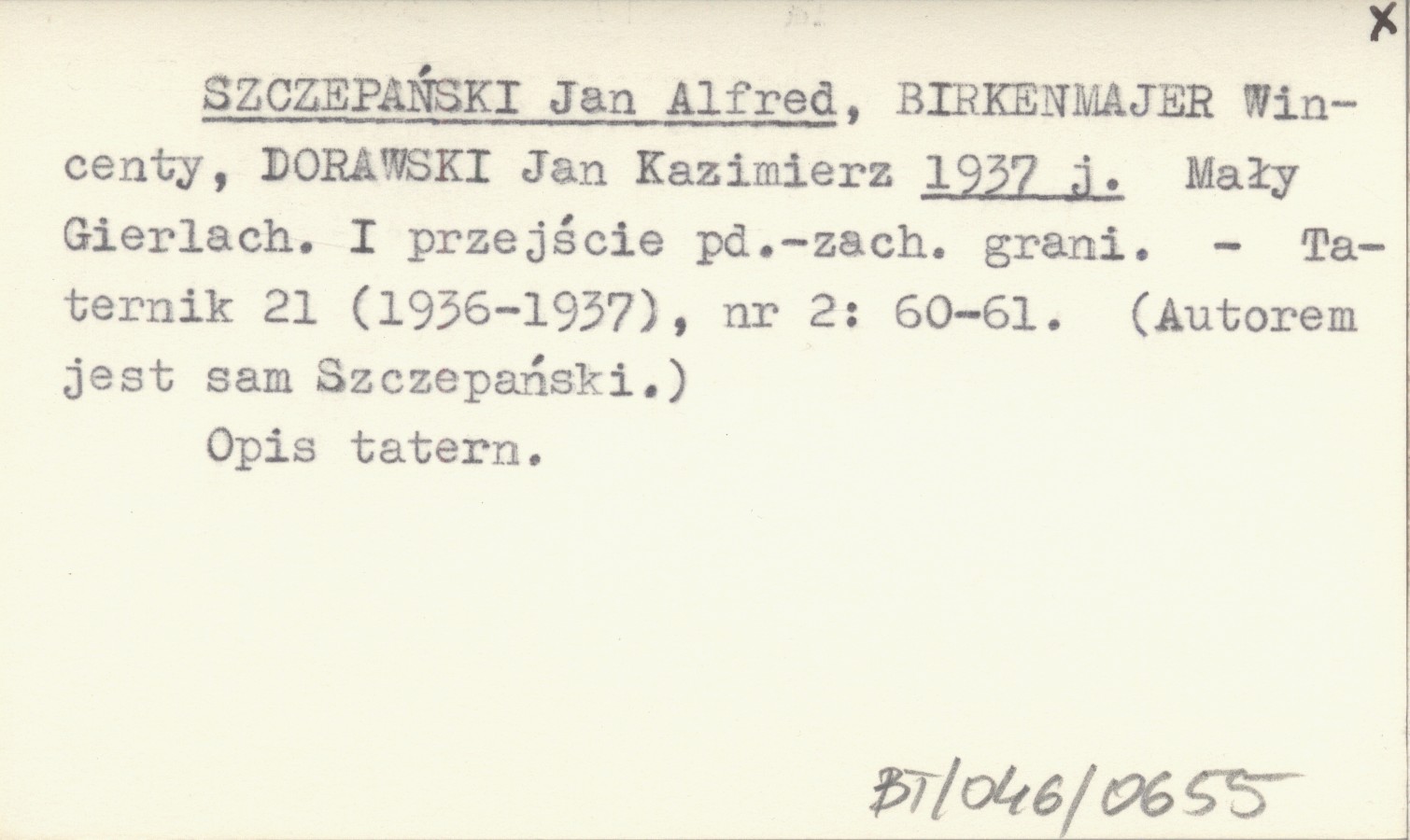 Taternik, 21 (1936-1937), nr 2: 60-61. Opis taternicki. Autorem jest sam Szczepański.