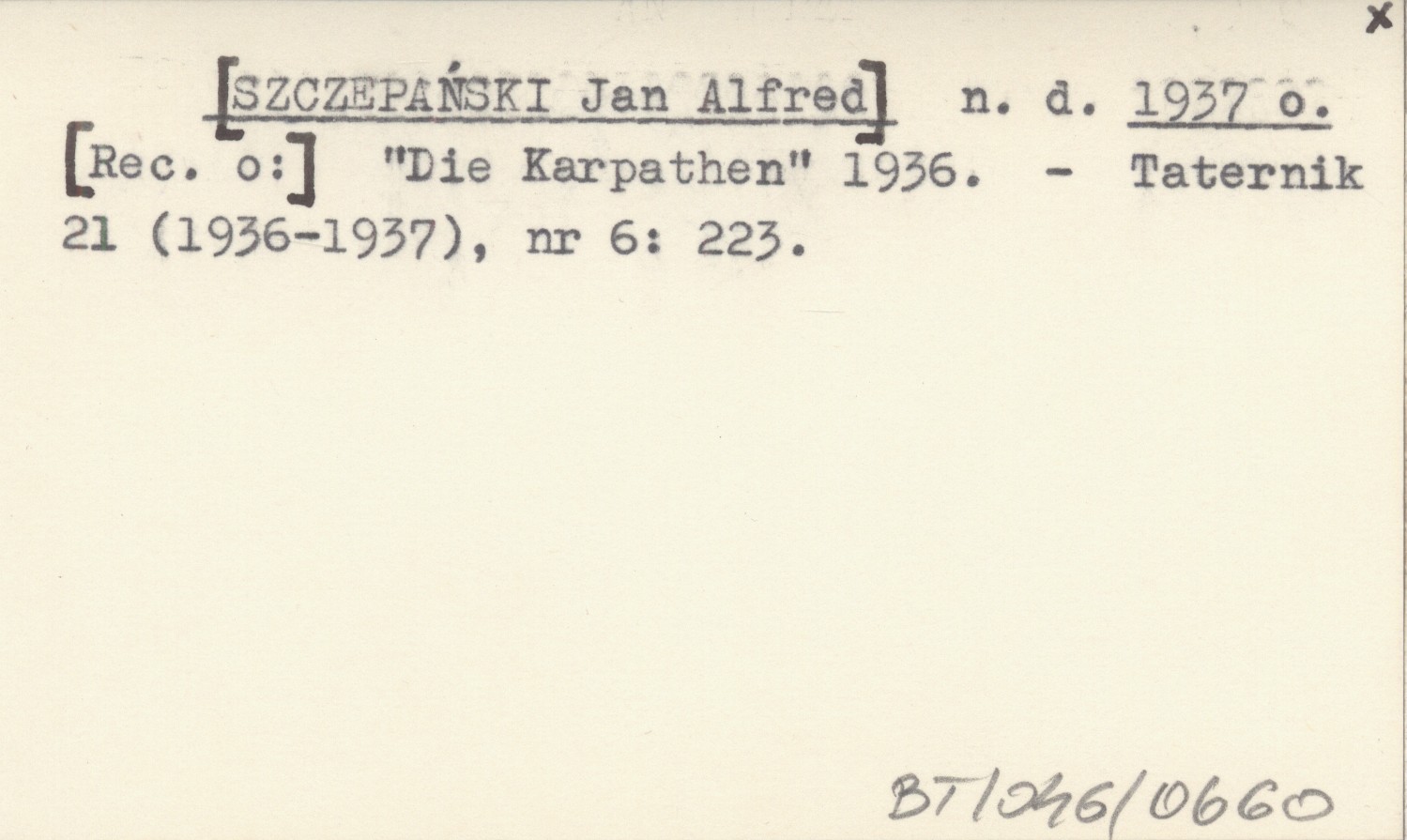 n. d. [SZCZEPAŃSKI Jan Alfred] 1937 o [Rec. o:] "Die Karpathen" 1936.
