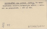 SZCZEPAŃSKI Jan Alfred 1938 g Po wysokogórskim sezonie. Osiągnięte wyniki i wnioski na przyszłość.