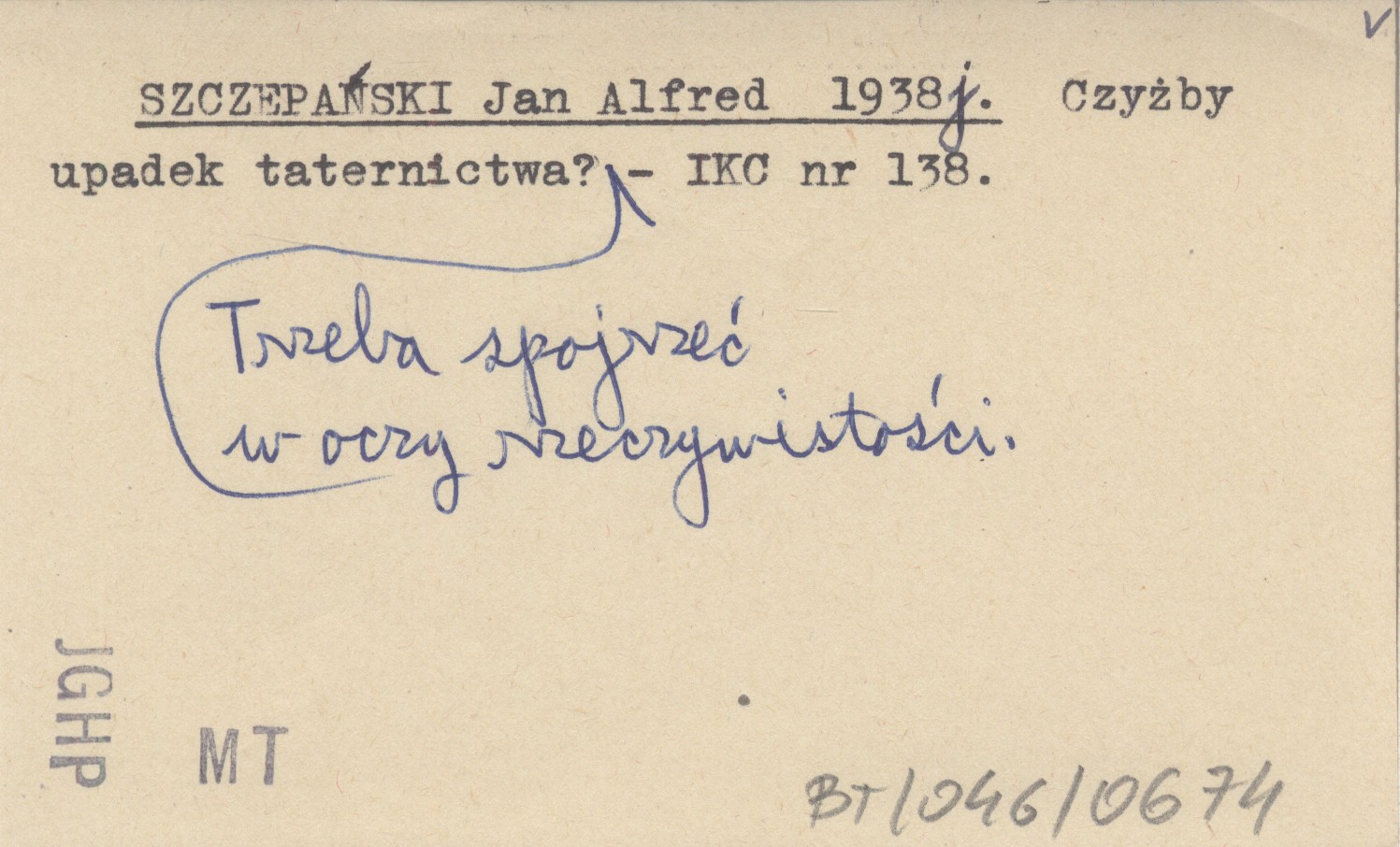 SZCZEPAŃSKI Jan Alfred 1938 j Czyżby upadek taternictwa? Trzeba spojrzeć w oczy rzeczywistości.