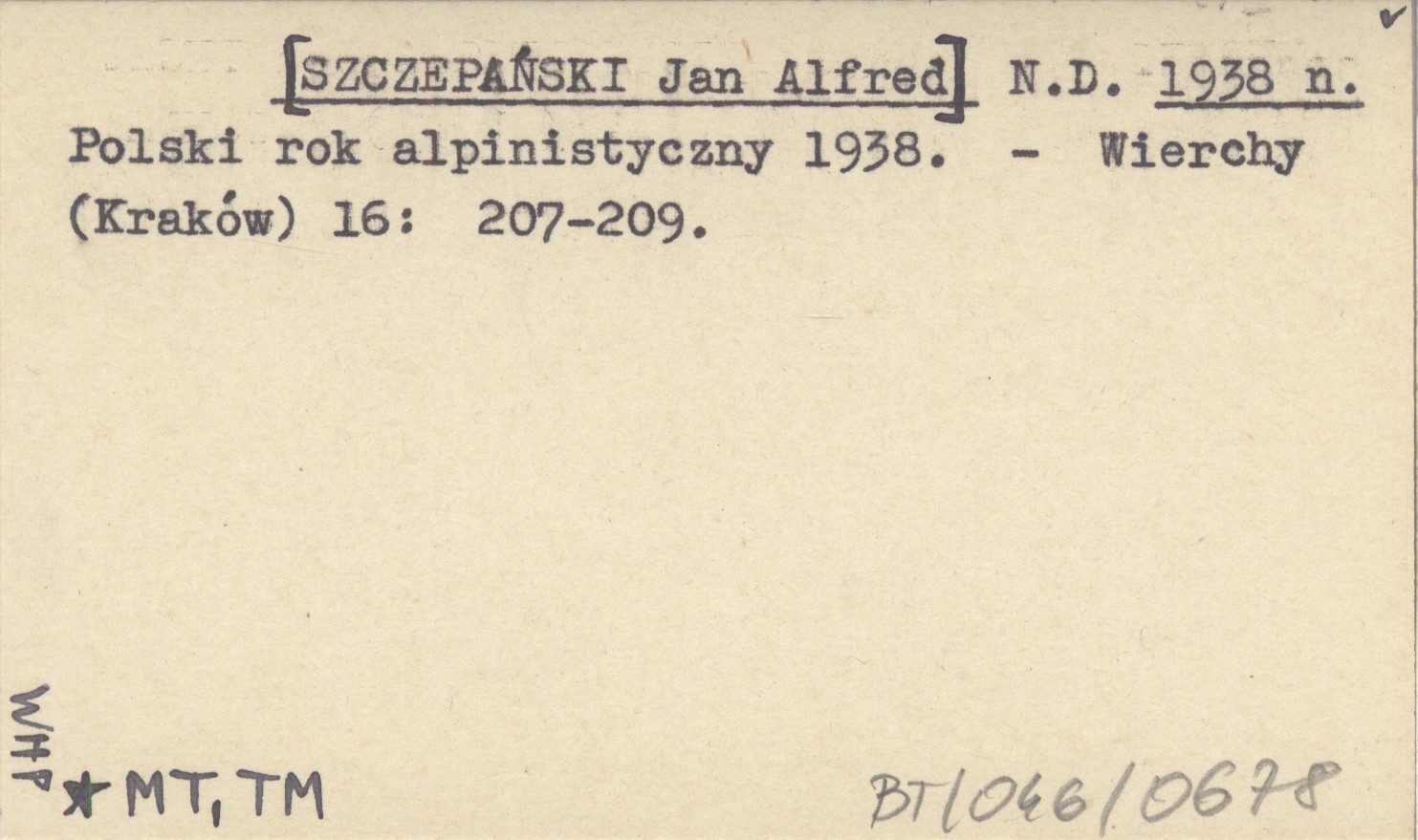 N. D. [SZCZEPAŃSKI Jan Alfred] 1938 n Polski rok alpinistyczny 1938.