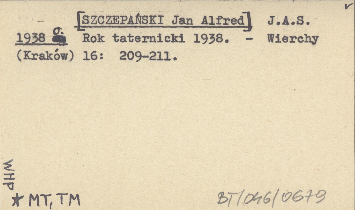 J. A. S. [SZCZEPAŃSKI Jan Alfred] 1938 o Rok taternicki 1938.
