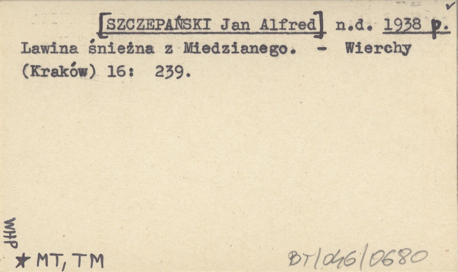 n. d. [SZCZEPAŃSKI Jan Alfred] 1938 p Lawina śnieżna z Miedzianego.