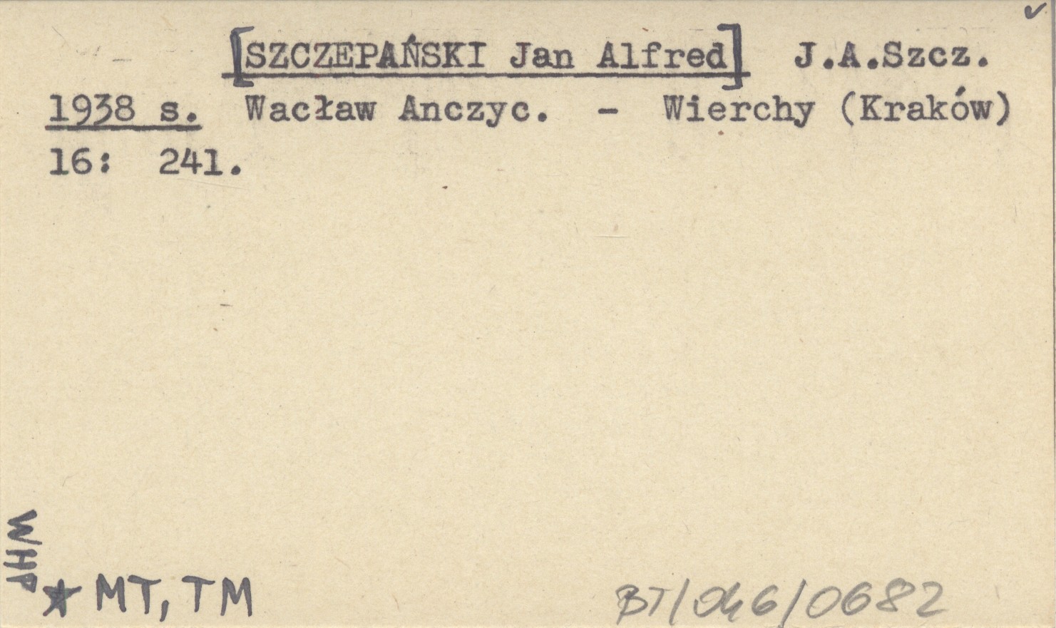 J. A. Szcz. [SZCZEPAŃSKI Jan Alfred] 1938 s Wacław Anczyc.
