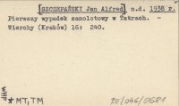 n. d. [SZCZEPAŃSKI Jan Alfred] 1938 r Pierwszy wypadek samolotowy w Tatrach.