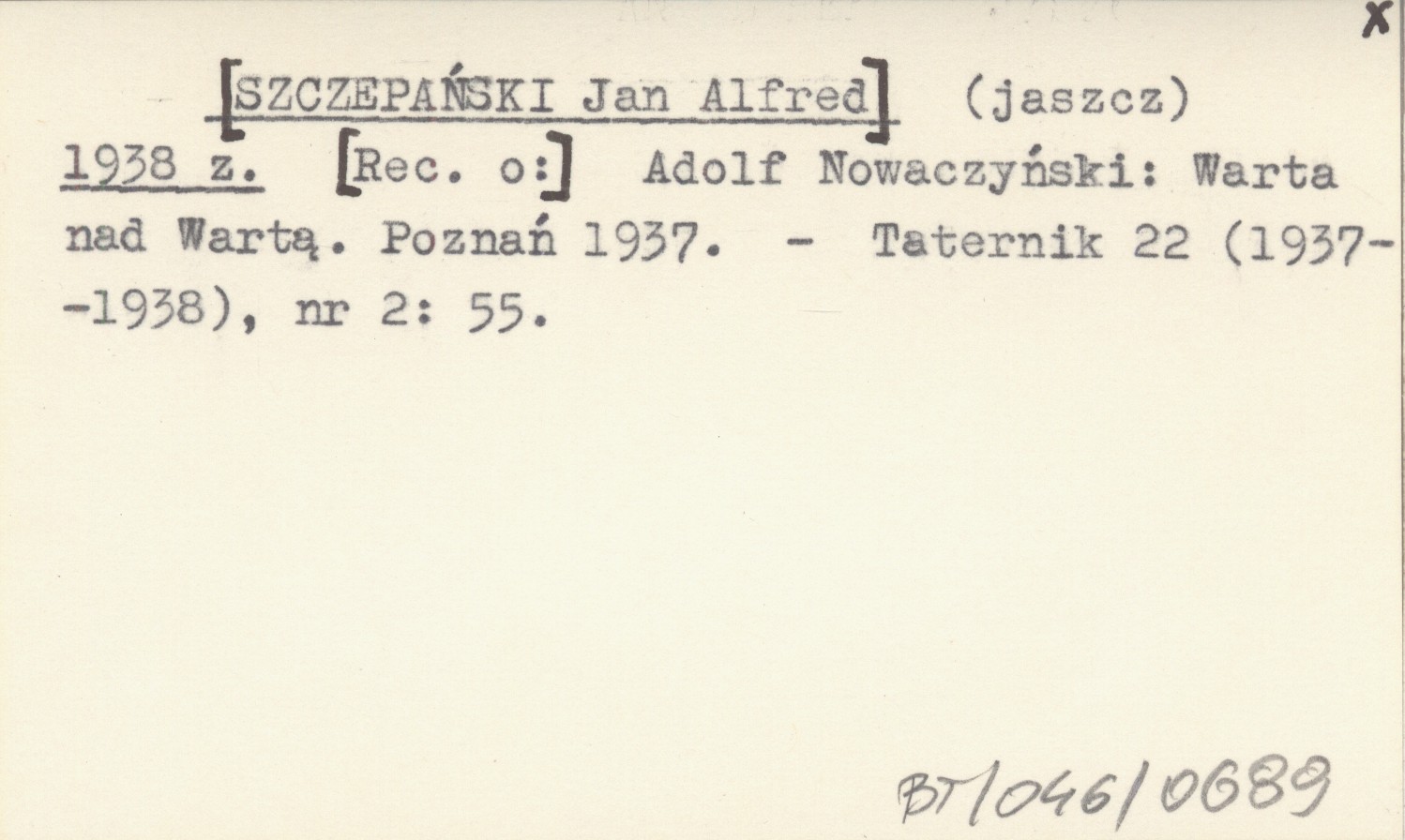 (jaszcz) [SZCZEPAŃSKI Jan Alfred] 1938 z [Rec. o:] Adolf Nowaczyński: Warta nad Wartą. Poznań 1937.