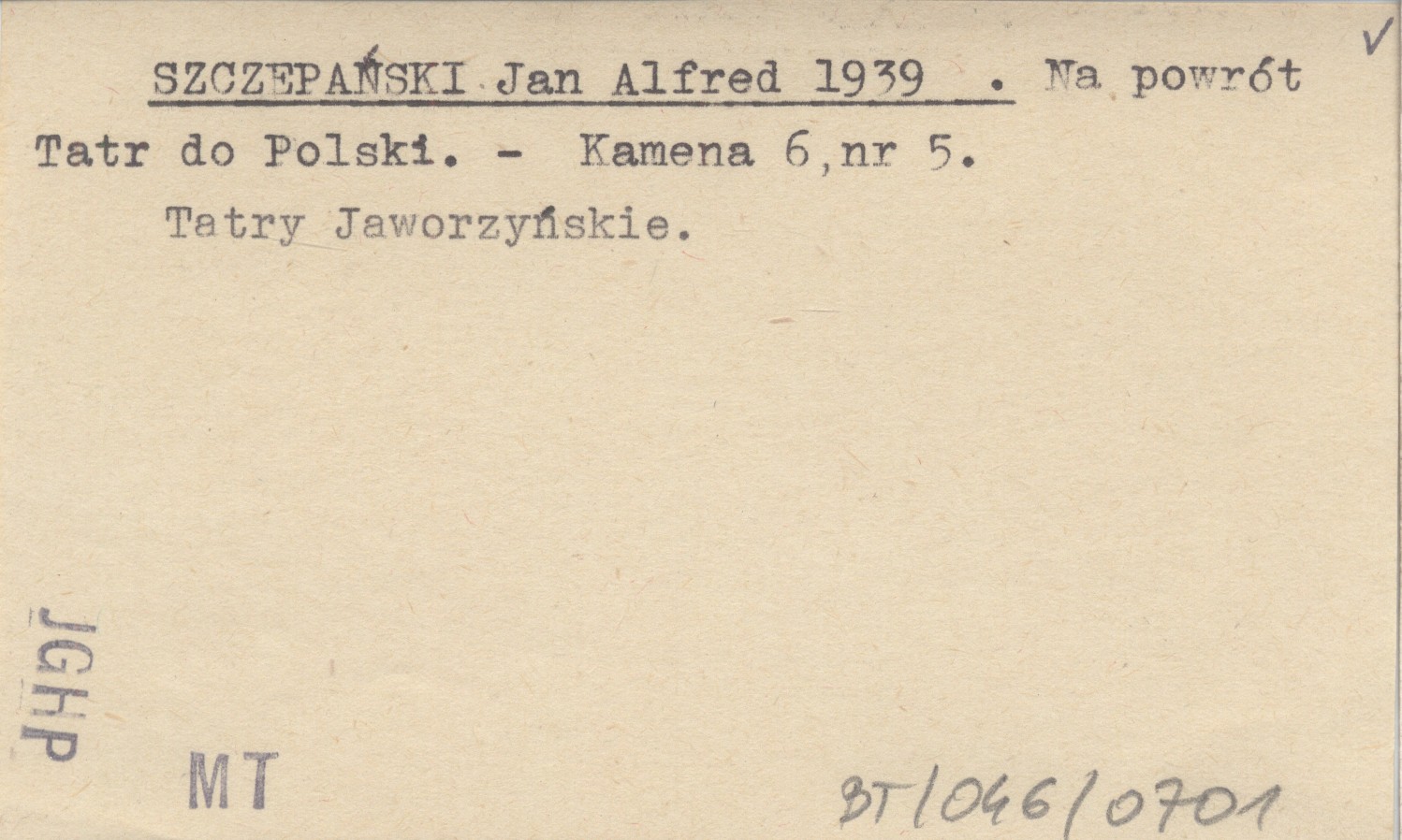 SZCZEPAŃSKI Jan Alfred 1939 Na powrót Tatr do Polski.