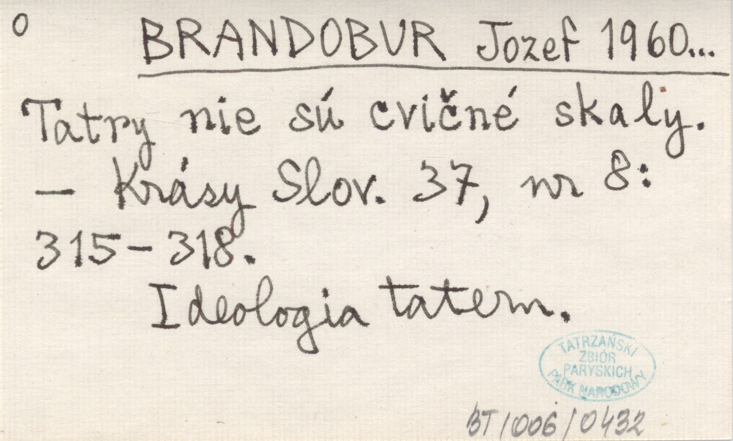 BRANDOBUR Jozef 1960... Tatry nie sú cvičné skaly.