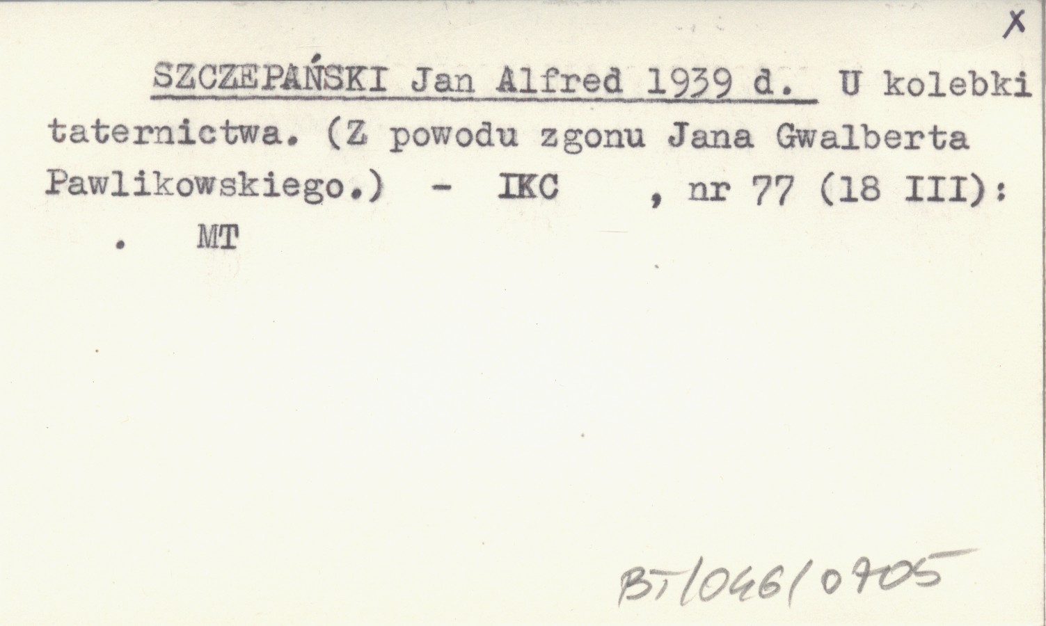 SZCZEPAŃSKI Jan Alfred 1939 d U kolebki taternictwa. (Z powodu zgonu Jana Gwalberta Pawlikowskiego).