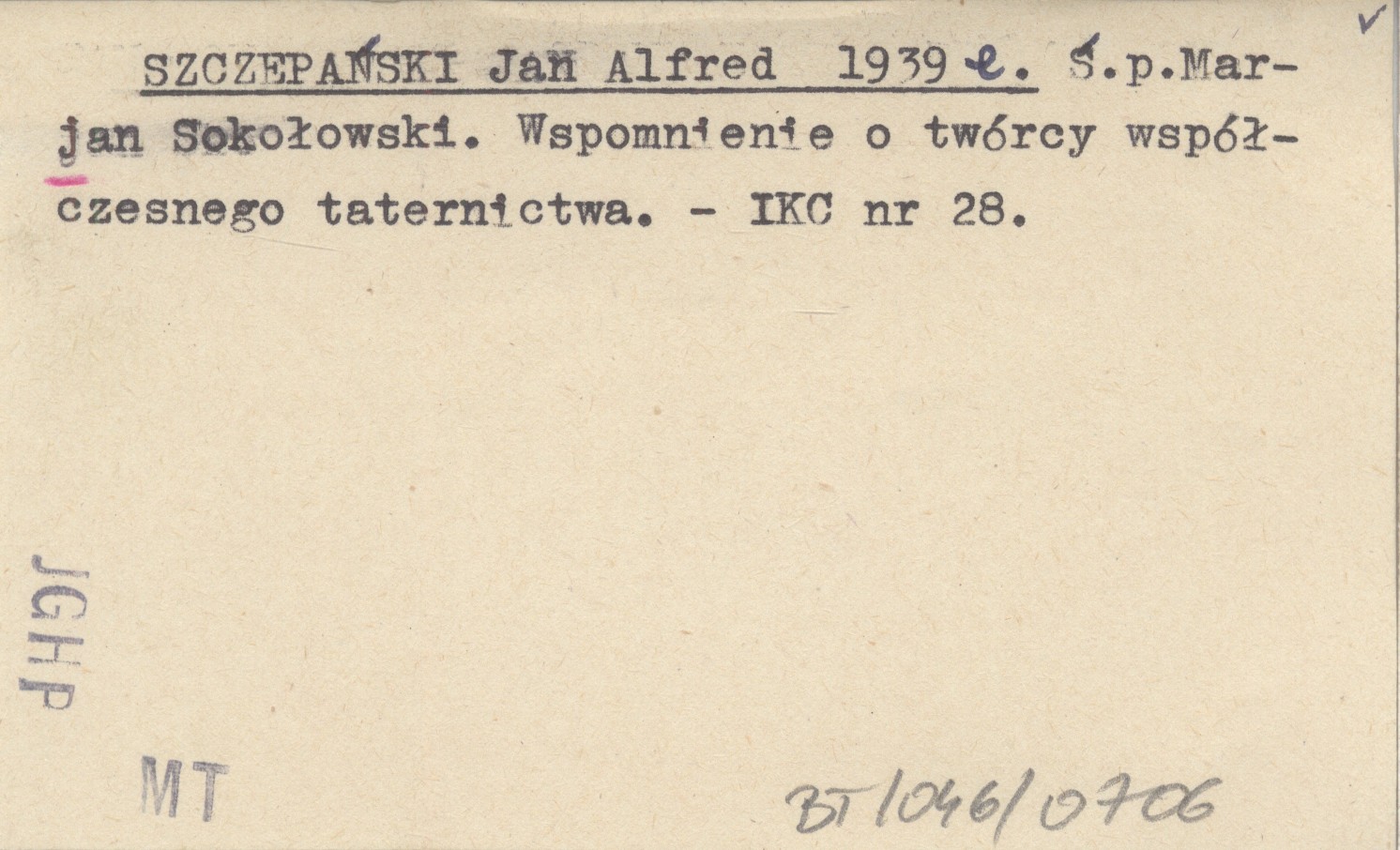 SZCZEPAŃSKI Jan Alfred 1939 e Ś.p. Marjan Sokołowski. Wspomnienie o twórcy współczesnego taternictwa.