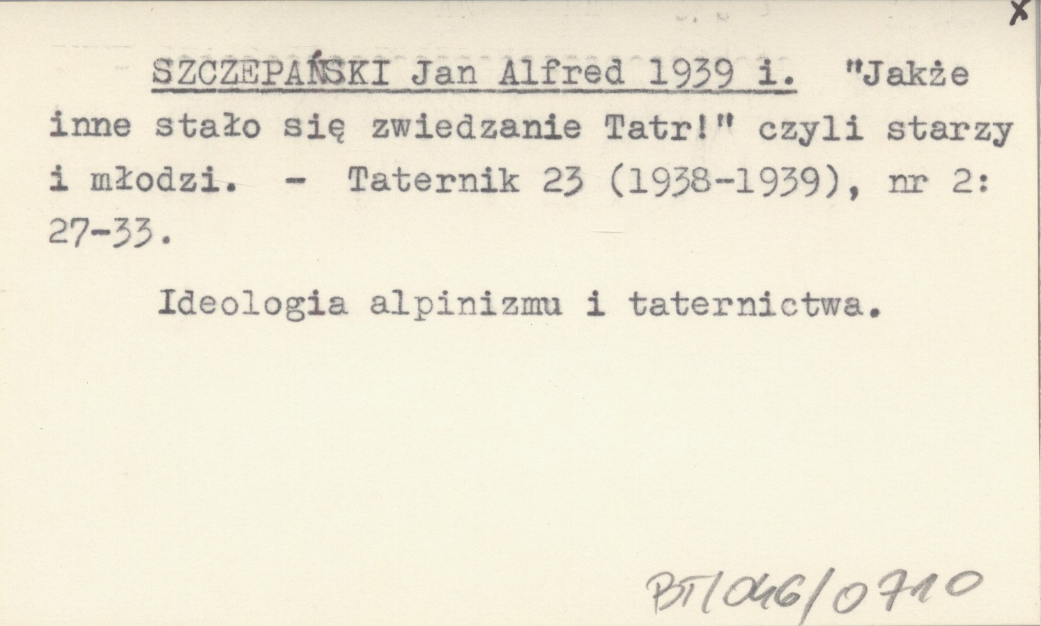 SZCZEPAŃSKI Jan Alfred 1939 i "Jakże inne stało się zwiedzanie Tatr!" czyli starzy i młodzi.