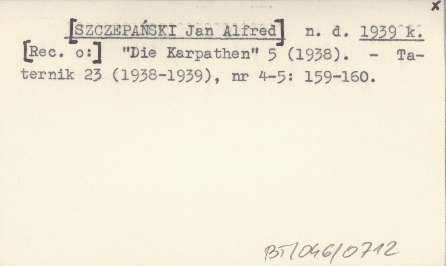 n. d. [SZCZEPAŃSKI Jan Alfred] 1939 k [Rec. o:] "Die Karpathen" 5 (1938).