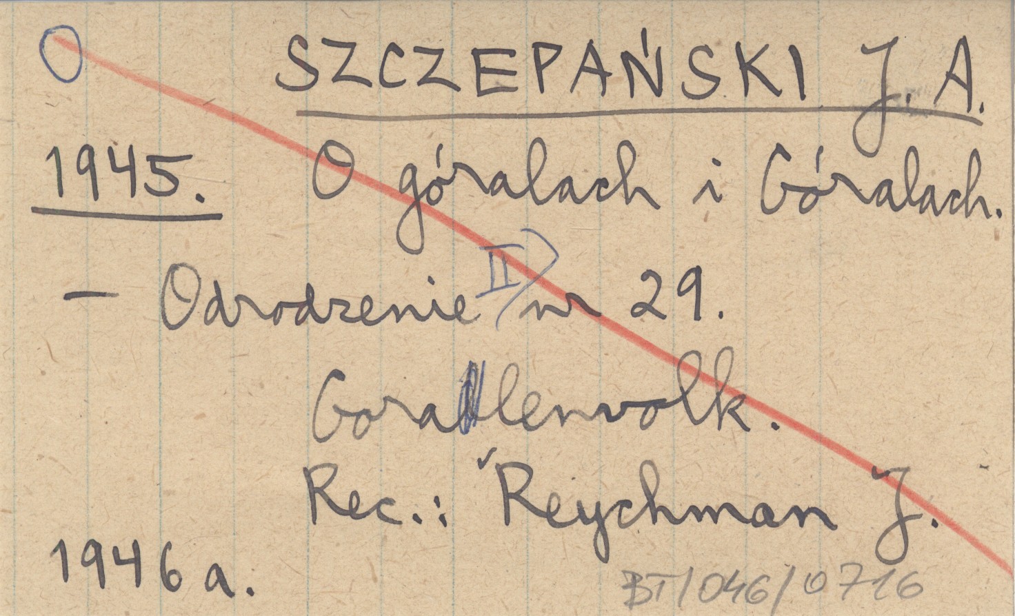 SZCZEPAŃSKI Jan Alfred 1945 O góralach i "Goralach".