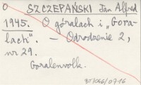 SZCZEPAŃSKI Jan Alfred 1945 O góralach i "Goralach".