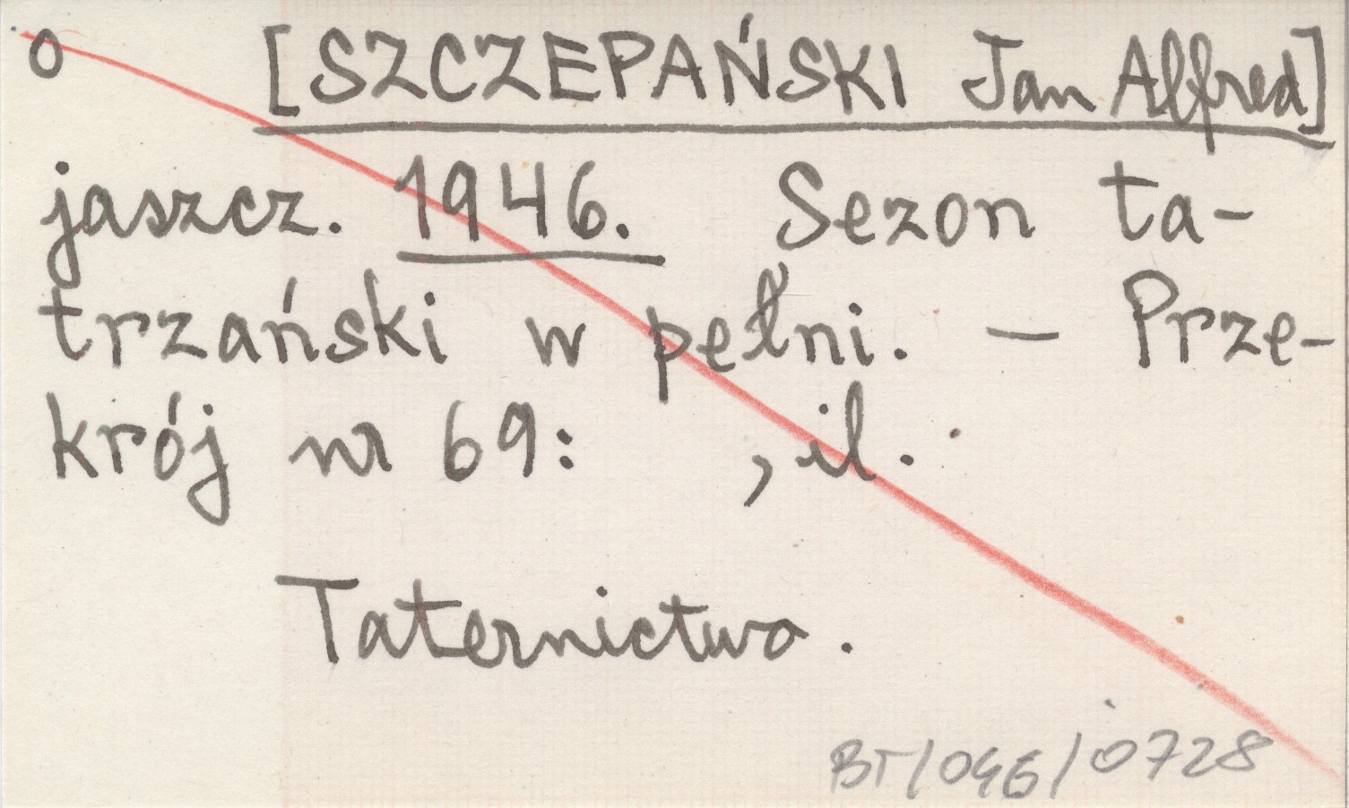 jaszcz. [SZCZEPAŃSKI Jan Alfred] 1946 Sezon tatrzański w pełni.