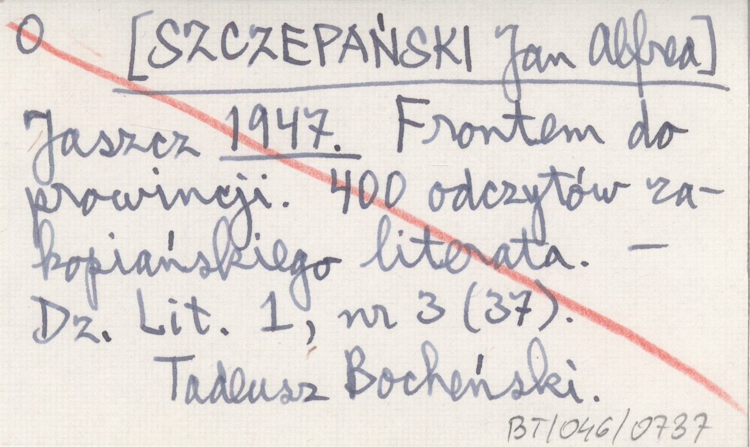 Dziennik Literacki, 1, nr 3 (37). Tadeusz Bocheński.