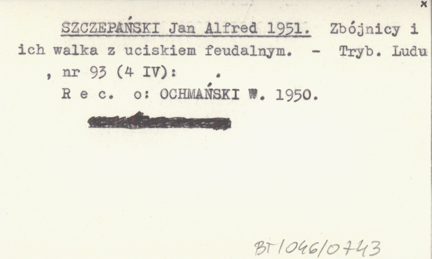 SZCZEPAŃSKI Jan Alfred 1951 Zbójnicy i ich walka z uciskiem feudalnym.