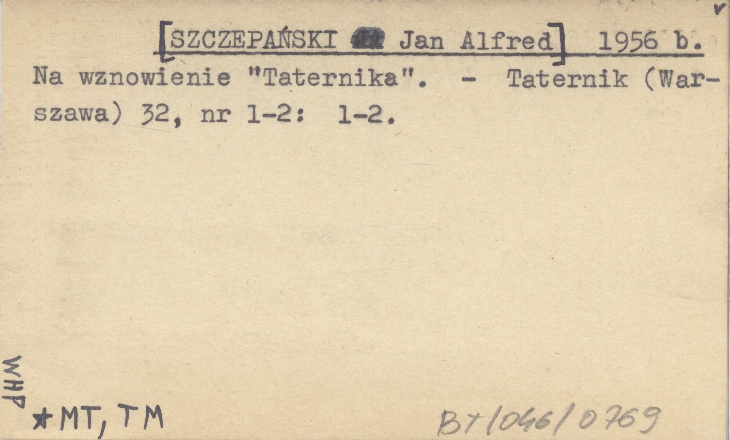 [SZCZEPAŃSKI Jan Alfred] 1956 b Na wznowienie "Taternika".