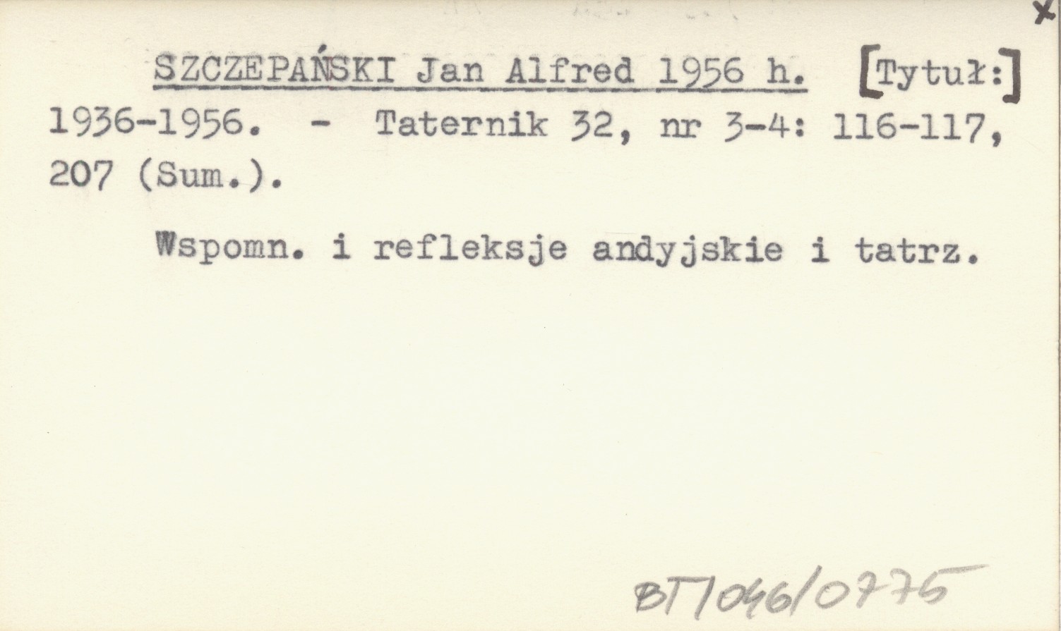 Taternik, 32, nr 3-4: 116-117, 207 (Sum.). Wspomnienie i refleksje andyjskie i tatrzańskie.