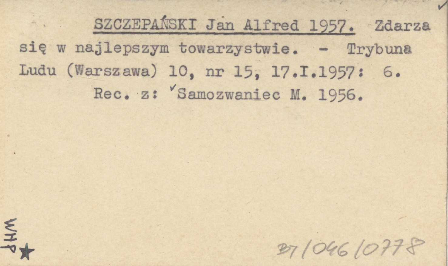 Trybuna Ludu (Warszawa) , 10, nr 15 (17 I 1957): 6. Recenzja z: SAMOZWANIEC M. 1956.