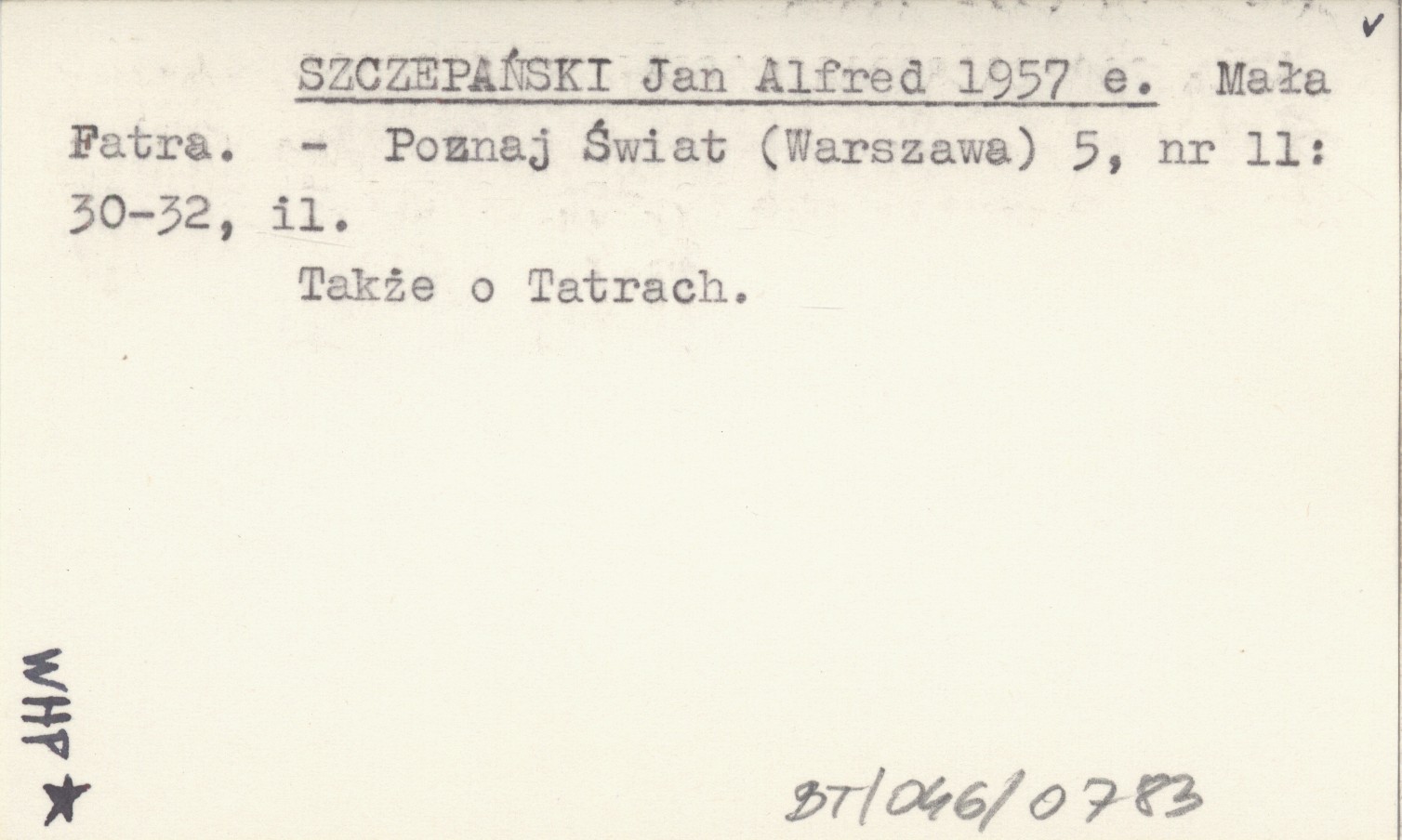 Poznaj Świat (Warszawa) , 5, nr 11: 30-32, il. Także o Tatrach.