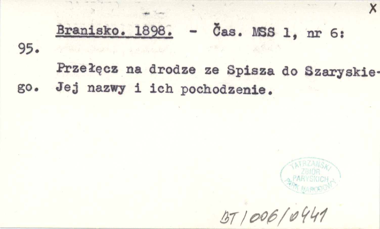 Čas MSS, 1, nr 6: 95. Przełęcz na drodze ze Spisza do Szaryskiego. Jej nazwy i ich pochodzenie.