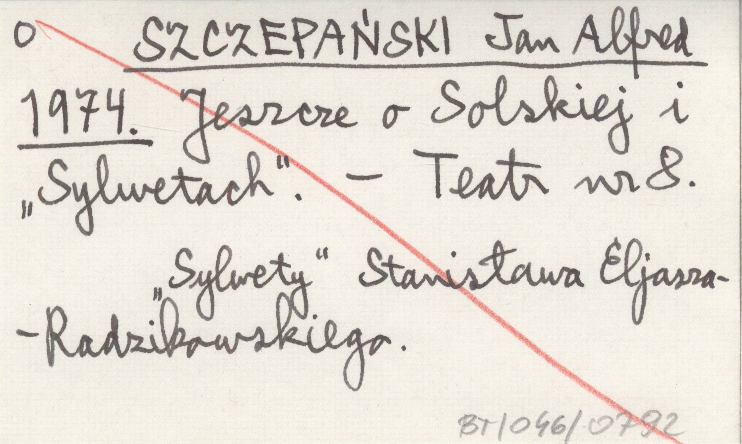 SZCZEPAŃSKI Jan Alfred 1974 Jeszcze o Solskiej i "Sylwetach".