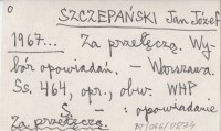 SZCZEPAŃSKI Jan Józef 1967... Za przełęczą. Wybór opowiadań.