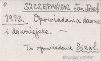 SZCZEPAŃSKI Jan Józef 1973 Opowiadanie dawne i dawniejsze.