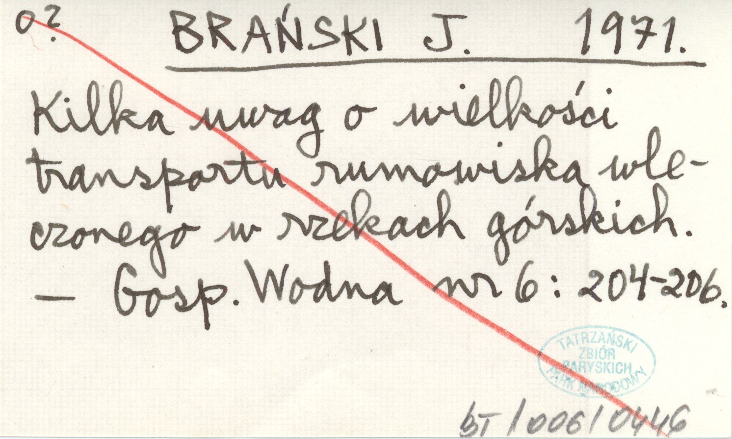 BRAŃSKI J. 1971 Kilka uwag o wielkości transportu rumowiska wleczonego w rzekach górskich.