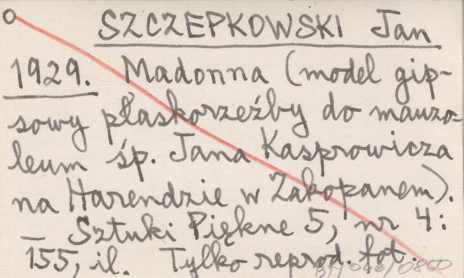 SZCZEPKOWSKI Jan 1929 Madonna (model gipsowy płaskorzeźby do mauzoleum śp. Jana Kasprowicza na Harendzie w Zakopanem).