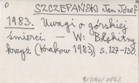 SZCZEPAŃSKI Jan Józef 1983 Uwagi o górskiej śmierci.